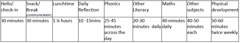 Morning sessions include Maths and English, Daily Reflection, some Physical Development, Social and Emotional learning as well as Communication Skills.