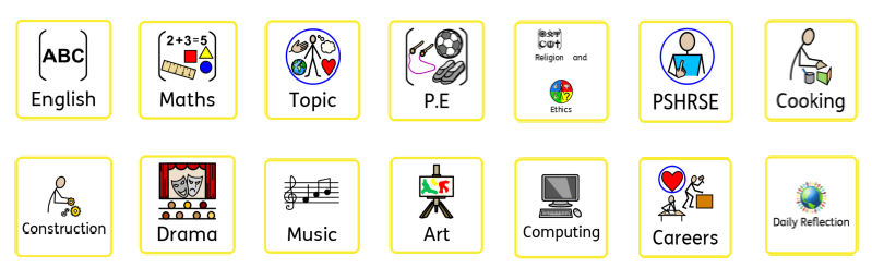 In the Primary Thematic Life Skills Pathway, you will see some, if not all, of these approaches to learning depending on the child’s individual needs: the use of Makaton, symbols, visually supported resources, visual timetables and now and next boards. Communication is a key skill for the Thematic Pathway as is developing the level of independence. Clear and labelled environments will be evident in every classroom. Attention Autism known as Bucket sessions are a perfect way to engage the students and increase their level of resilience, concentration and engagement. Communication aids will be utilised in every session according to the individual student’s needs such as PECS/ Communication Books at various levels, digital aids such as VOCAs and switches. Manipulatives are always used in Maths sessions particularly and hands-on resources to support learning are used in other sessions, where appropriate. The environments are clear and organised areas with separate areas designated for different purposes, e.g work, reading corners, calming space. In addition, you will see displays for English, Maths, Daily Reflection, our school values, Topic/children’s work, children’s individual targets and space for children to move and regulate.